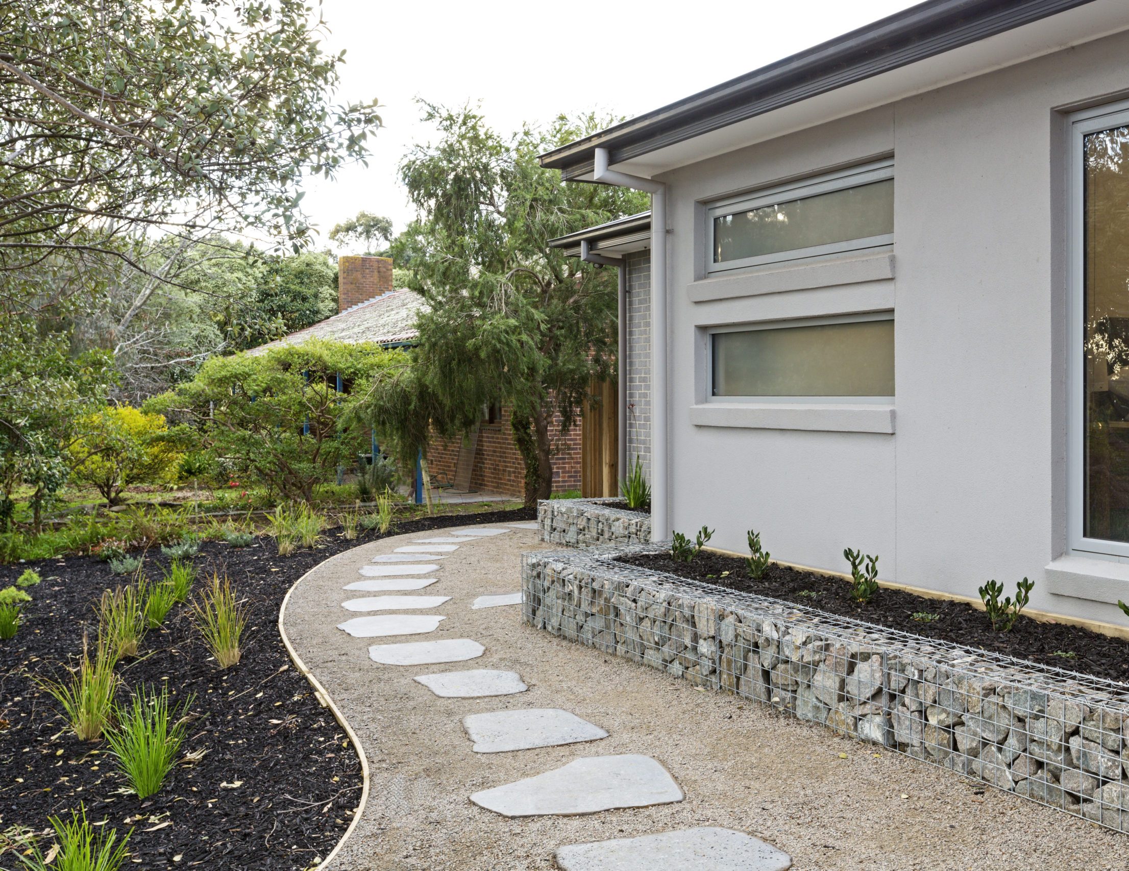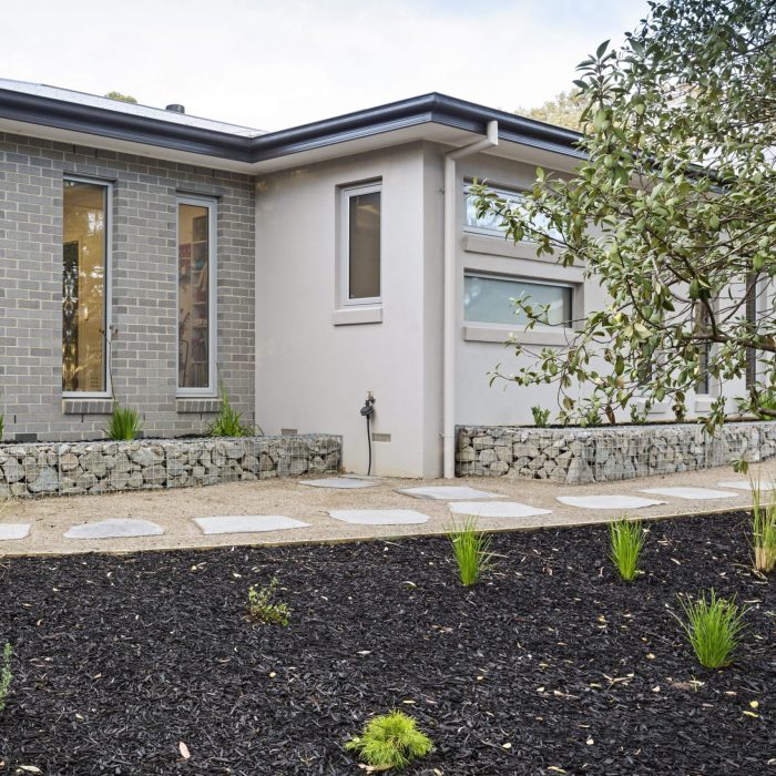 This beautifully renovated house could barely be seen from the street due to overgrown trees and shrubs, we made the decision to only keep the main native gums in the front yard and get rid of the overgrown shrubs, this made room and brought in additional sunlight. Now with the added sunlight we could install over 150sqm of new Sir Walter Buffalo lawn area for the kids to use.